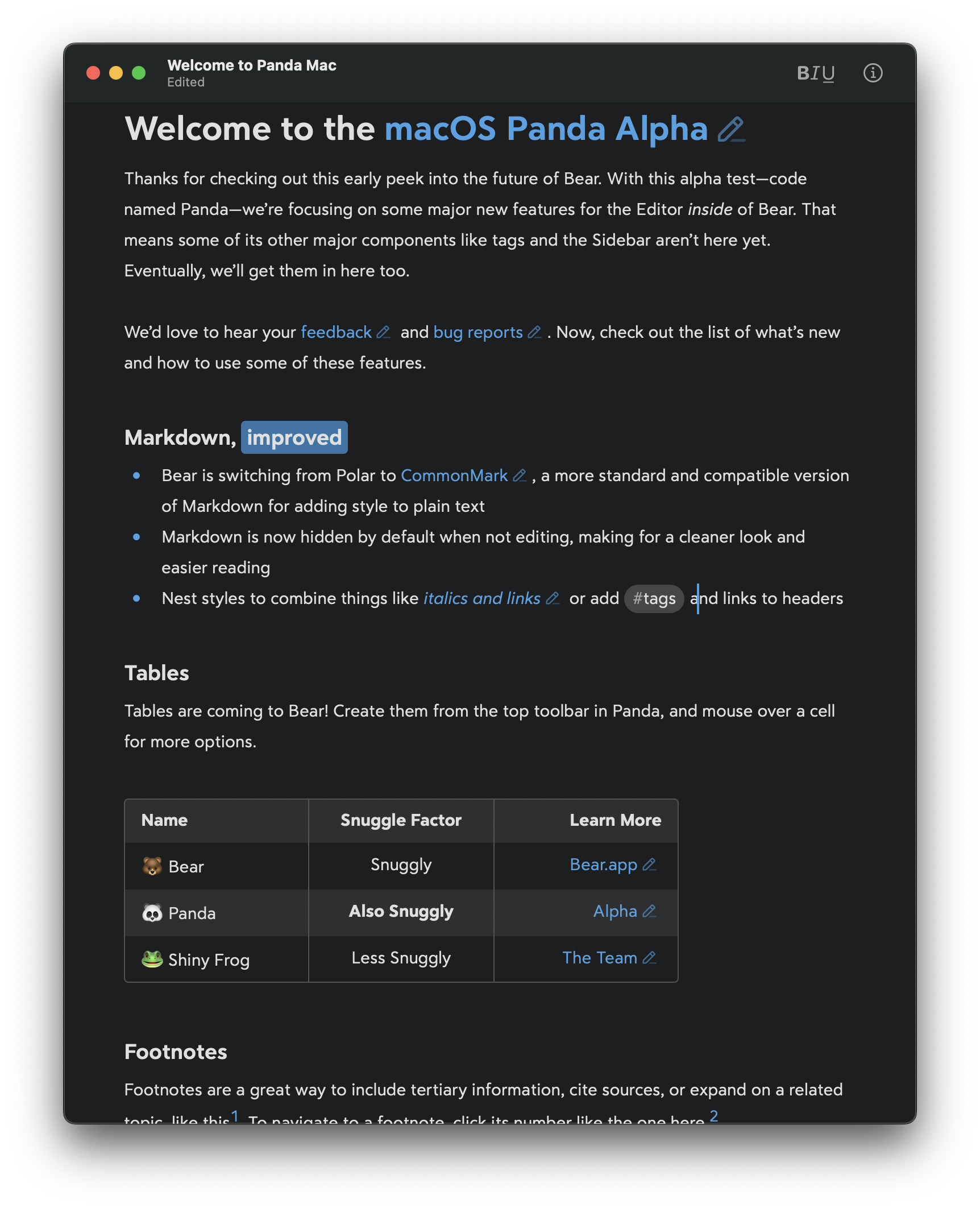 Ik ben bij Panda terechtgekomen via een korte zoektocht op Google naar wysiwyg markdown editor mac. Het eerste resultaat was een pagina op Reddit. Panda werd daar als eerste getipt. Als alternatief werd de app Typora genoemd, maar die was met een prijs van $ 14,99 wat mij betreft te duur. En Panda is gratis – wat ook komt doordat het nog in alpha is.